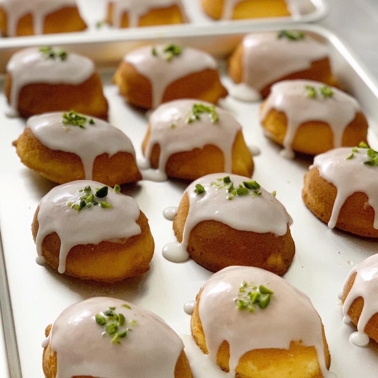 〇レモンケーキ(1個)...我が家の陽当たりの良い庭でたわわに実った新鮮な無農薬レモンで作ります。レモンアイシングをかけたキュンと甘酸っぱいさわやかな味です。