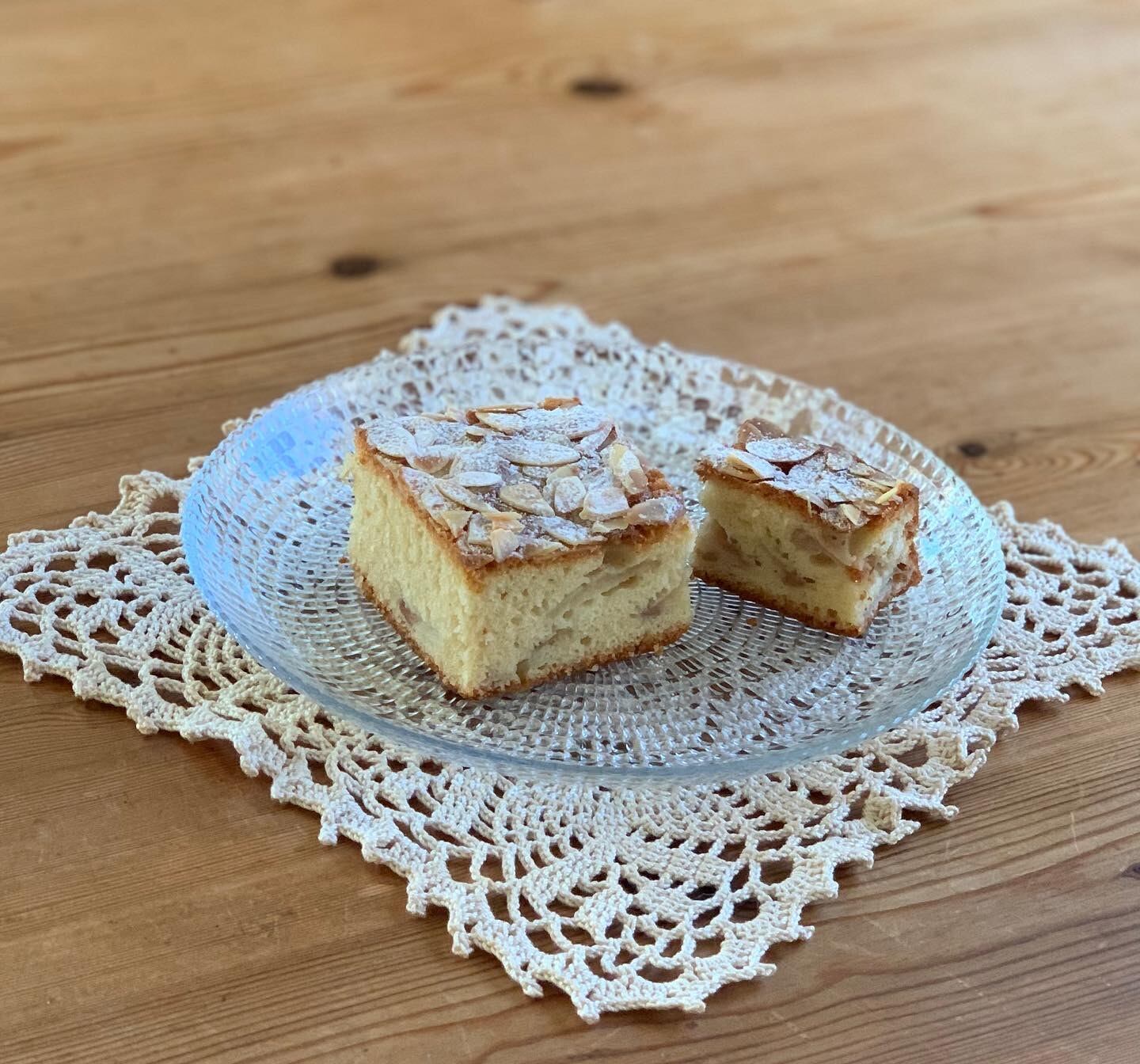 ○りんごのアーモンドケーキ(1個)...りんごの食感とバターとアーモンドの風味のしっとりケーキ。ほっとする美味しさです。
