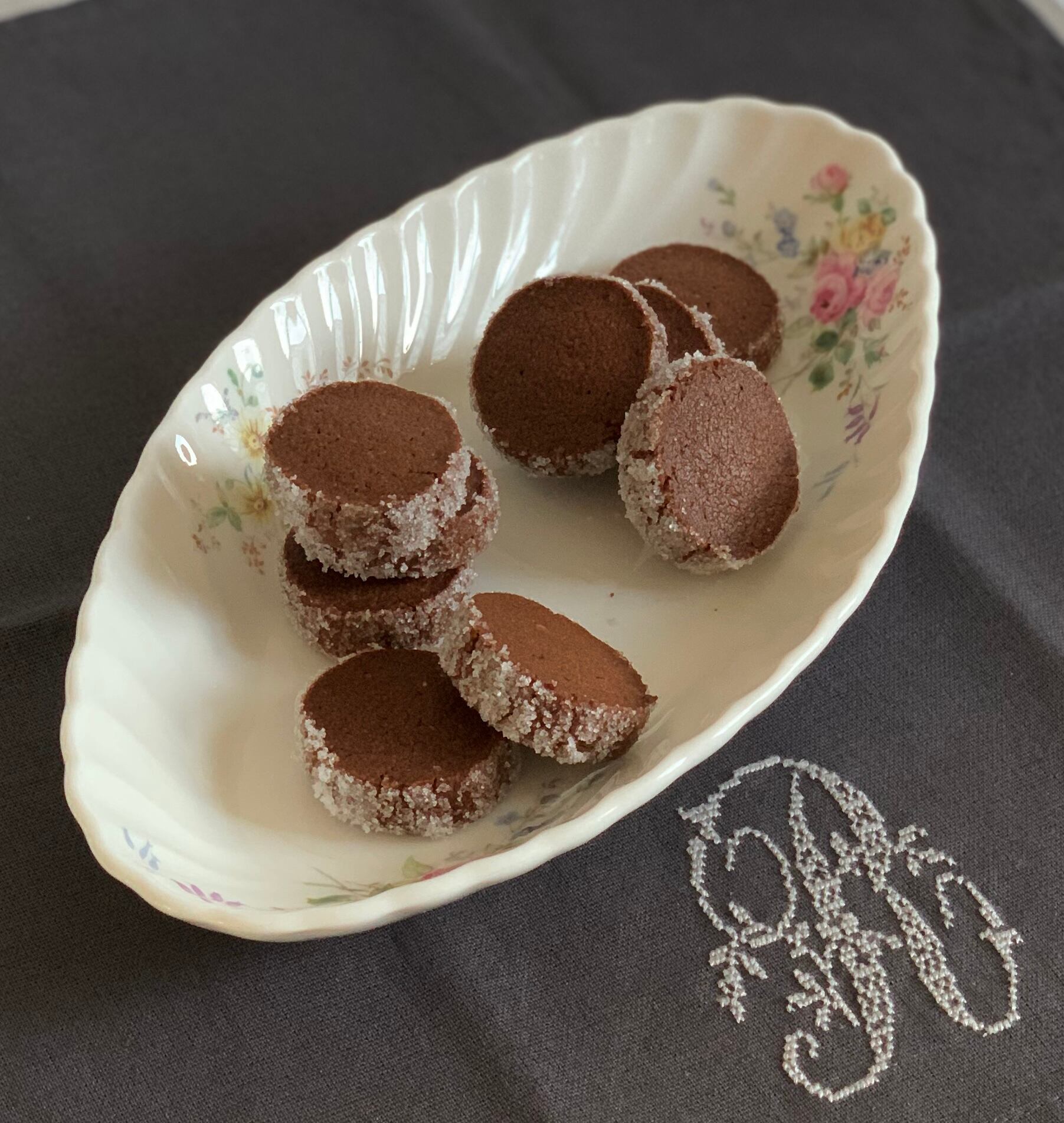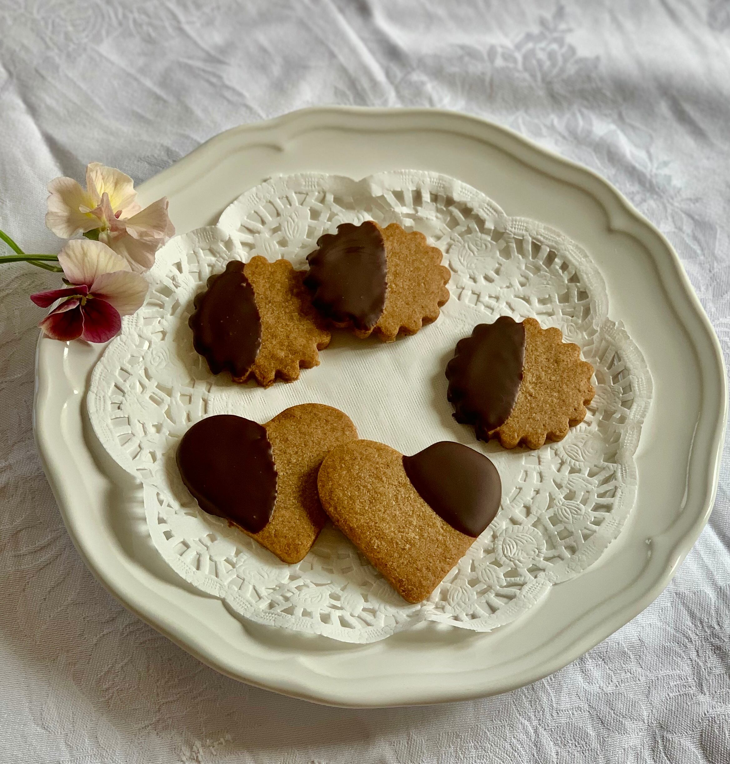 ○スパイスチョコサブレ(2枚)...シナモンとカルダモン、全粒粉入りの香ばしいサブレにチョコを纏いました。
