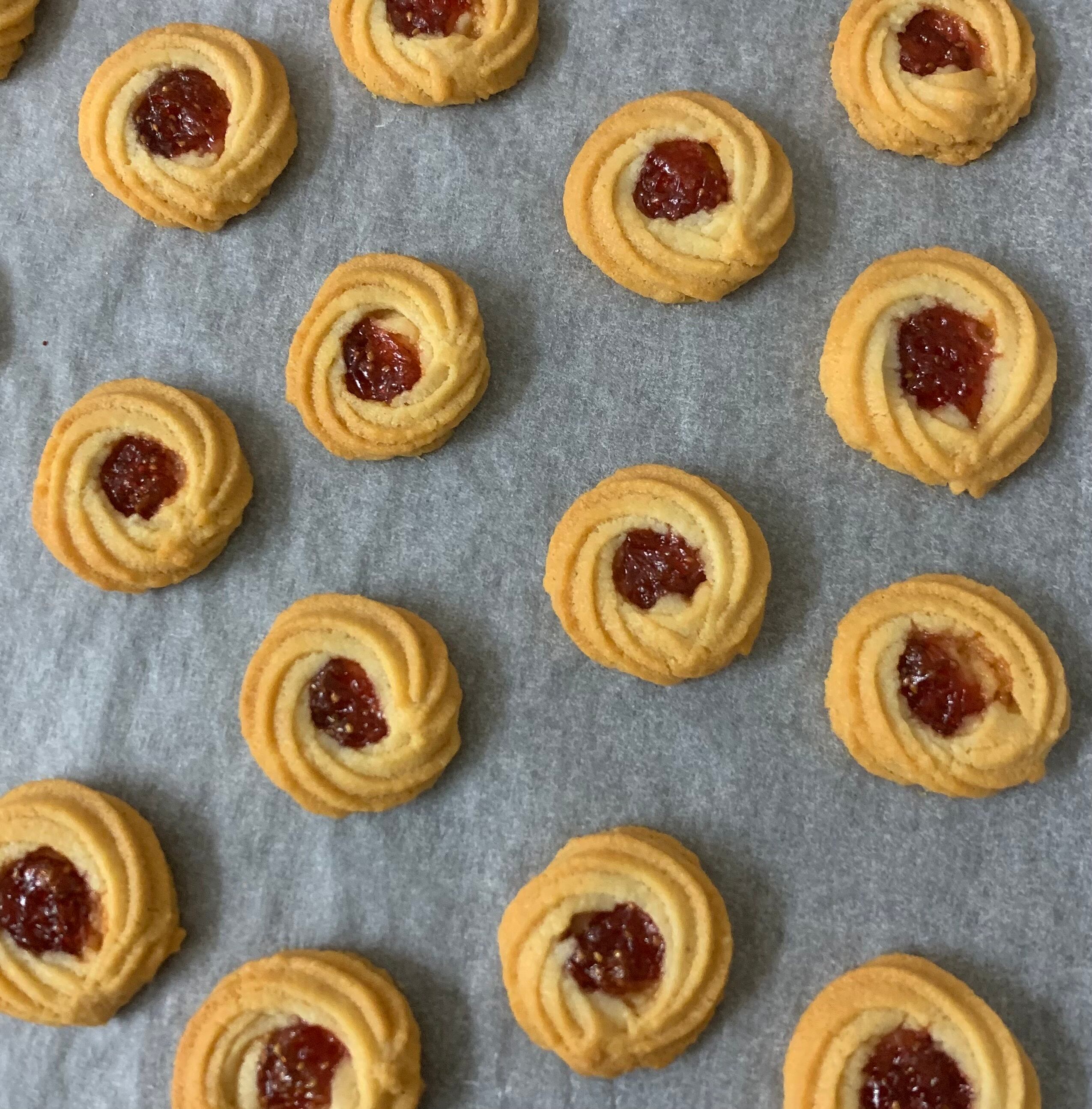 手作りの旬の苺ジャムをのせて可愛らしく焼き上げました。
